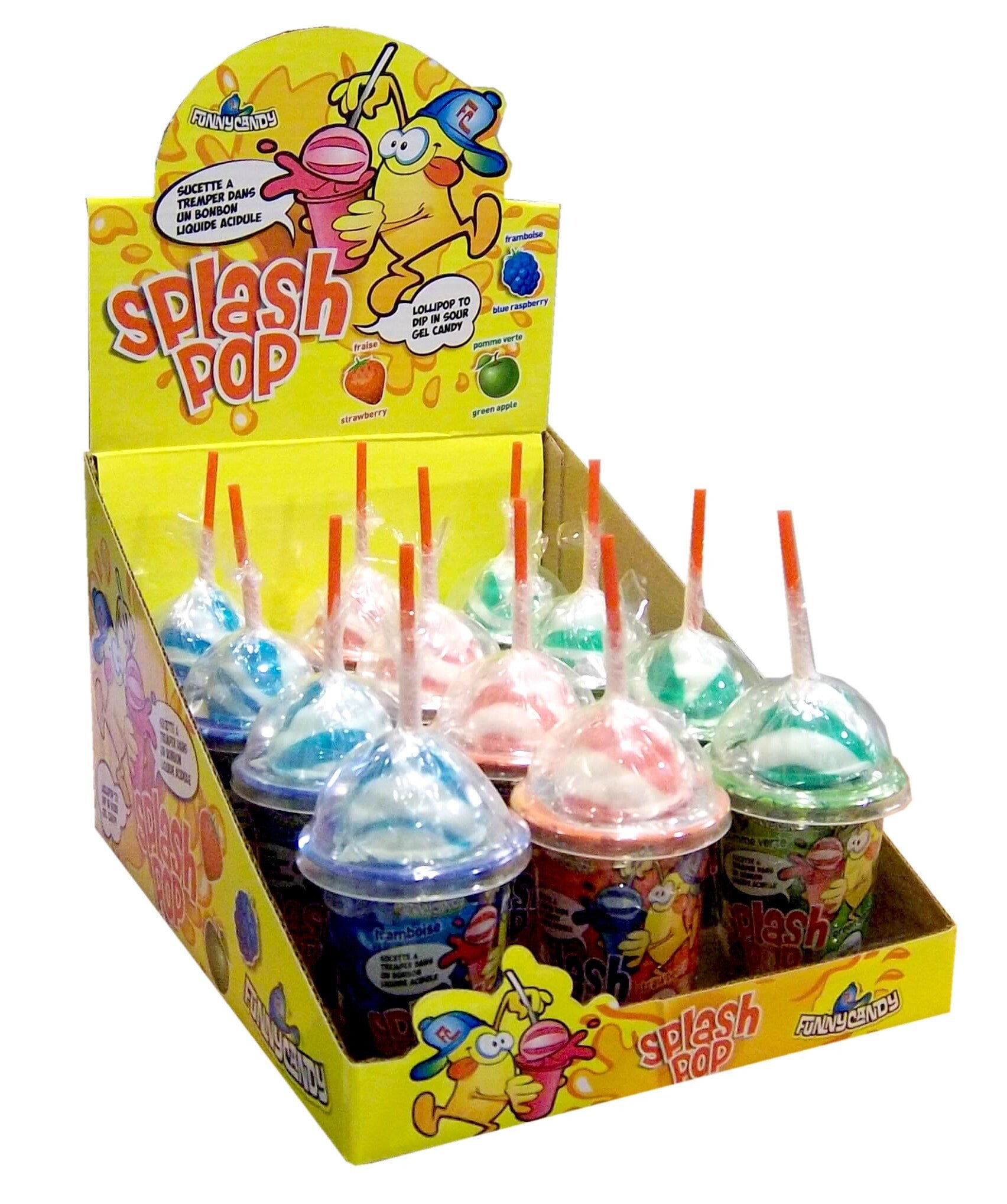 De Splash pop is een heerlijke lolly die u kunt weken in een verzuurde vloeistof. Bent u al te hebzuchtig? Dan trekt u al snel gekke bekken. Hoe dan ook zorgt de unieke mengeling voor een ware smaaksensatie in iedere mond. De Splash Pop komt in een van de drie verkrijgbare smaken (aardbei, appel of framboos).
