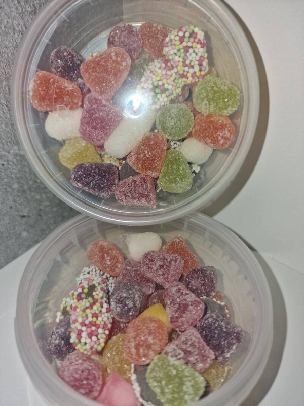 Suiker, Glucosestroop, Water, Gelatine, Voedingszuur (E330),Tarwezetmeel, Cacaomassa, Maiszetmeel, Aroma\'S,Zuurteregelaar (E331), Kleurende Levensmiddelen(Concentraat Van Appel, Zwarte Bes, Wortel, Citroen, Radijs,Spirulina, Saffloer), Emulgator: Soja Lecithine, Glansmiddelen(E901, E903), Plantaardige Olie (Kokos, Raapzaad),Geleermiddel (E414),